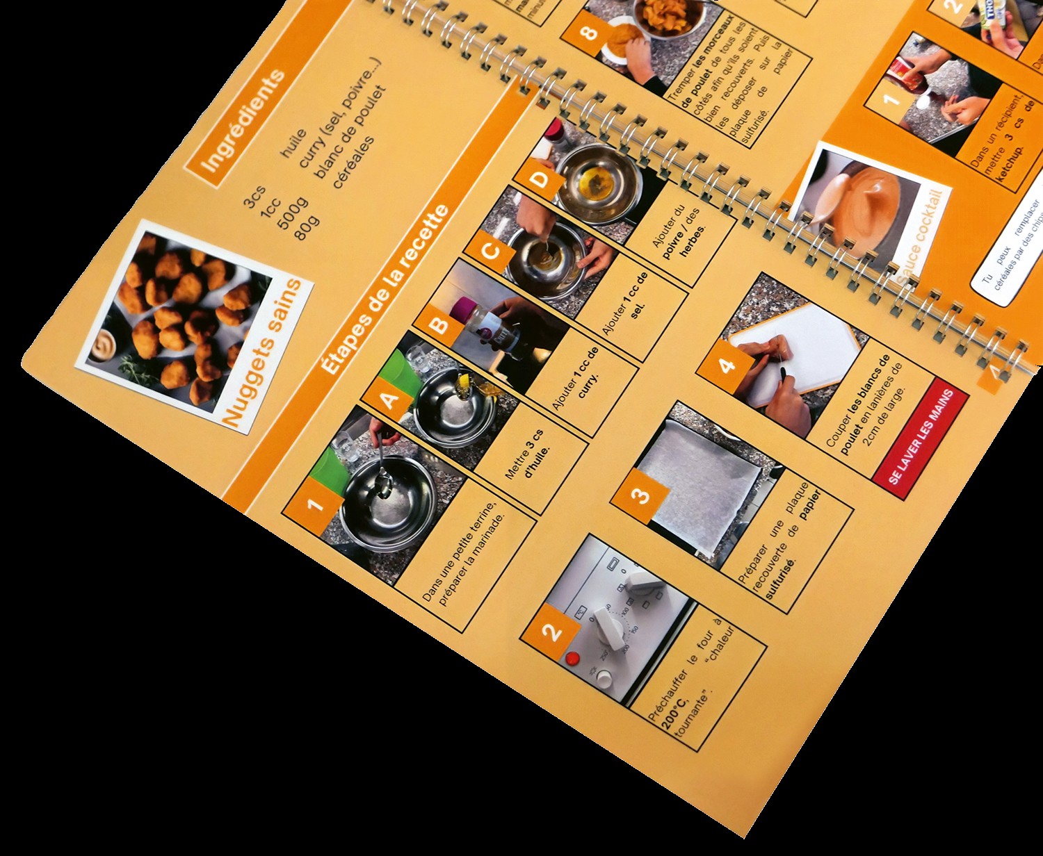 Ce projet a tout de suite motivé le stagiaire CPS, ce qui était primordial sachant qu’il fallait pouvoir compter sur sa force d’entraînement. Il s’agissait bien sûr d’abord de faire les achats, avant de passer à la pratique culinaire, puis à la phase d’écriture. Durant l’année scolaire, les vendredis, les élèves ont expérimenté les recettes avec Isabel et les lundis, Benjamin les invitait à expliquer comment ils avaient procédé, en indiquant les ingrédients nécessaires et en décrivant les photos en quelques mots. Si tout s’est déroulé dans une certaine lenteur pour cette classe d’adaptation, tout s’est surtout fait dans la collaboration, en duos. «Ce n’était pas toujours facile de faire des choix à deux, mais Benjamin était là pour nous aider», lance un élève. Les voilà qu’ils parlent de leur première recette, celle des «Nuggets sains».