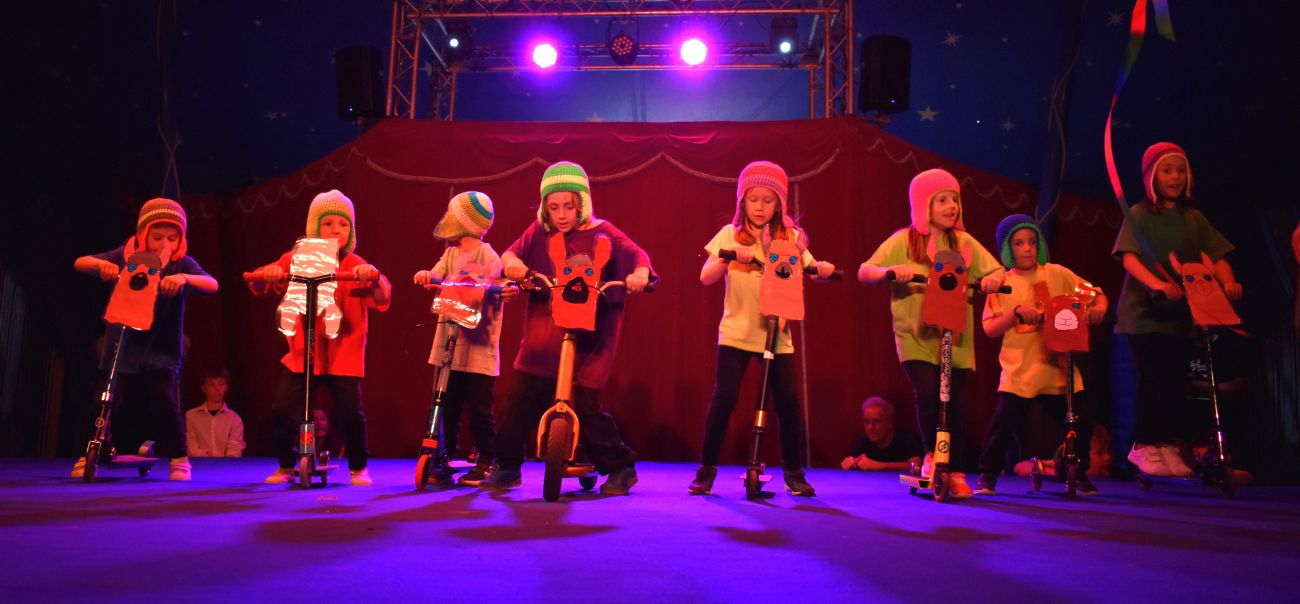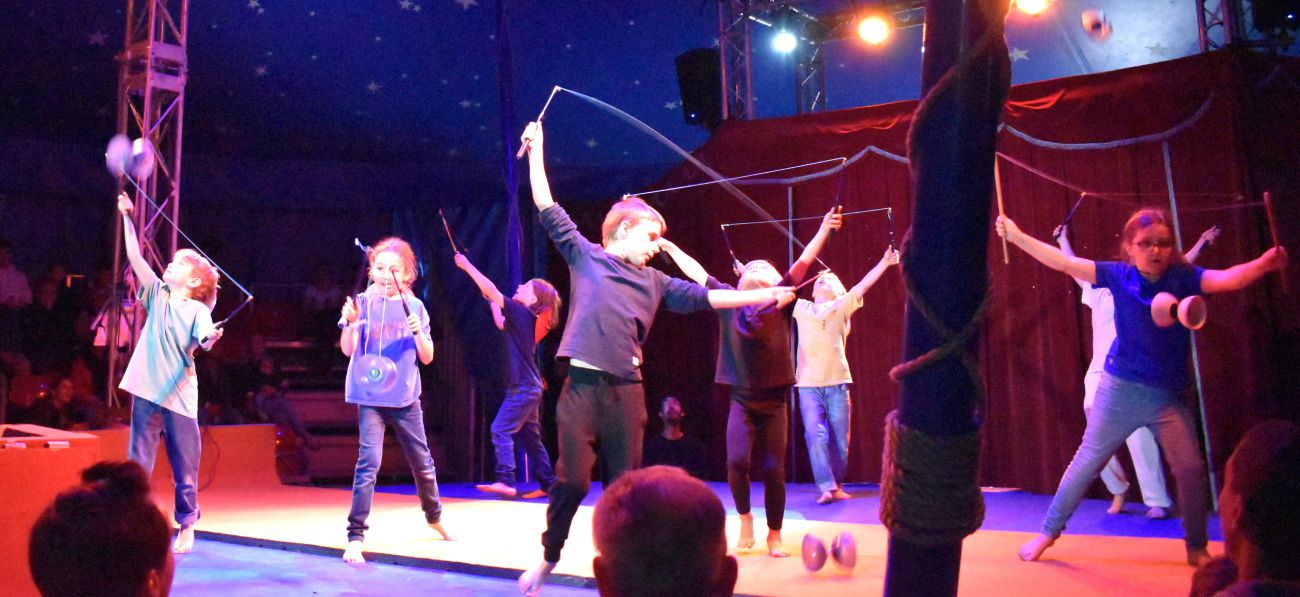 Dès l’automne, les élèves se sont initiés aux différents arts du cirque sous la houlette professionnelle des circassiens d’ArtScénik : Pavel, Martina, Chloé et Sébastien. Les élèves ont ensuite choisi la discipline dans laquelle ils avaient envie de s’exprimer : équilibre, jonglage, acrobatie, aérien, trampoline, magie, clown ... C’est ainsi que des numéros ont émergé de l’imagination des enfants, avec le soutien et la créativité des adultes qui ont bien sûr temporisé certaines audaces car on n’était pas loin de voir des acrobates propulsés de canons et atterrir sur les genoux des spectateurs.