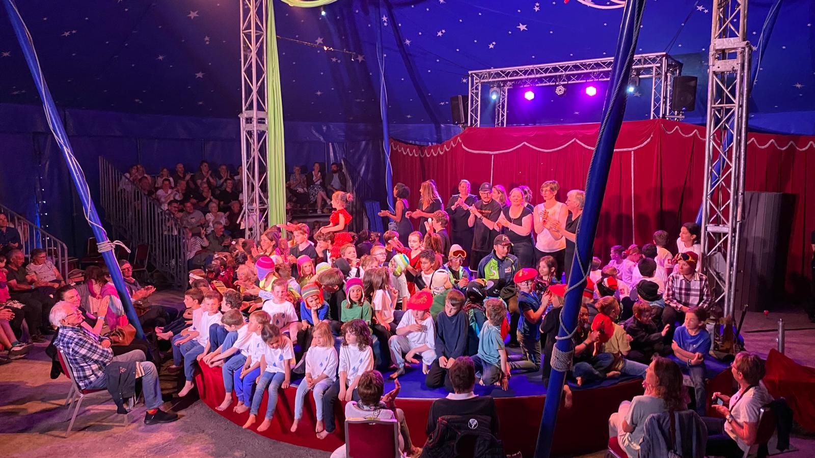 Aujourd’hui, mai 2025, le chapiteau est démonté. Sur la place des voitures s’installent et les élèves ont repris leur travail scolaire. Mais si on tend bien l’oreille, on peut entendre au détour d’un vestiaire des petites voix qui résonnent portées par la féérie de cette magnifique aventure.