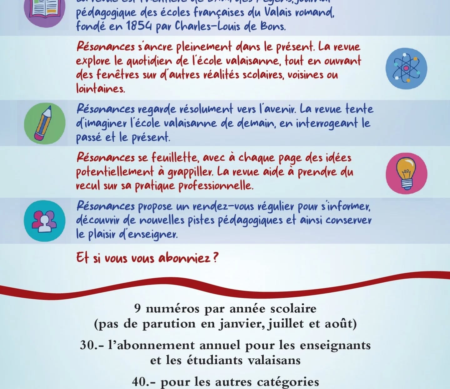 Vous trouverez plus d'informations concernant les abonnements et numéros sur notre site www.resonances-vs.ch 💡